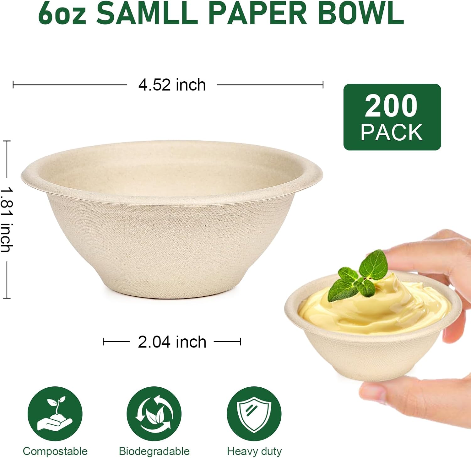 | Included Components | 6 oz paper bowls 200 pack |