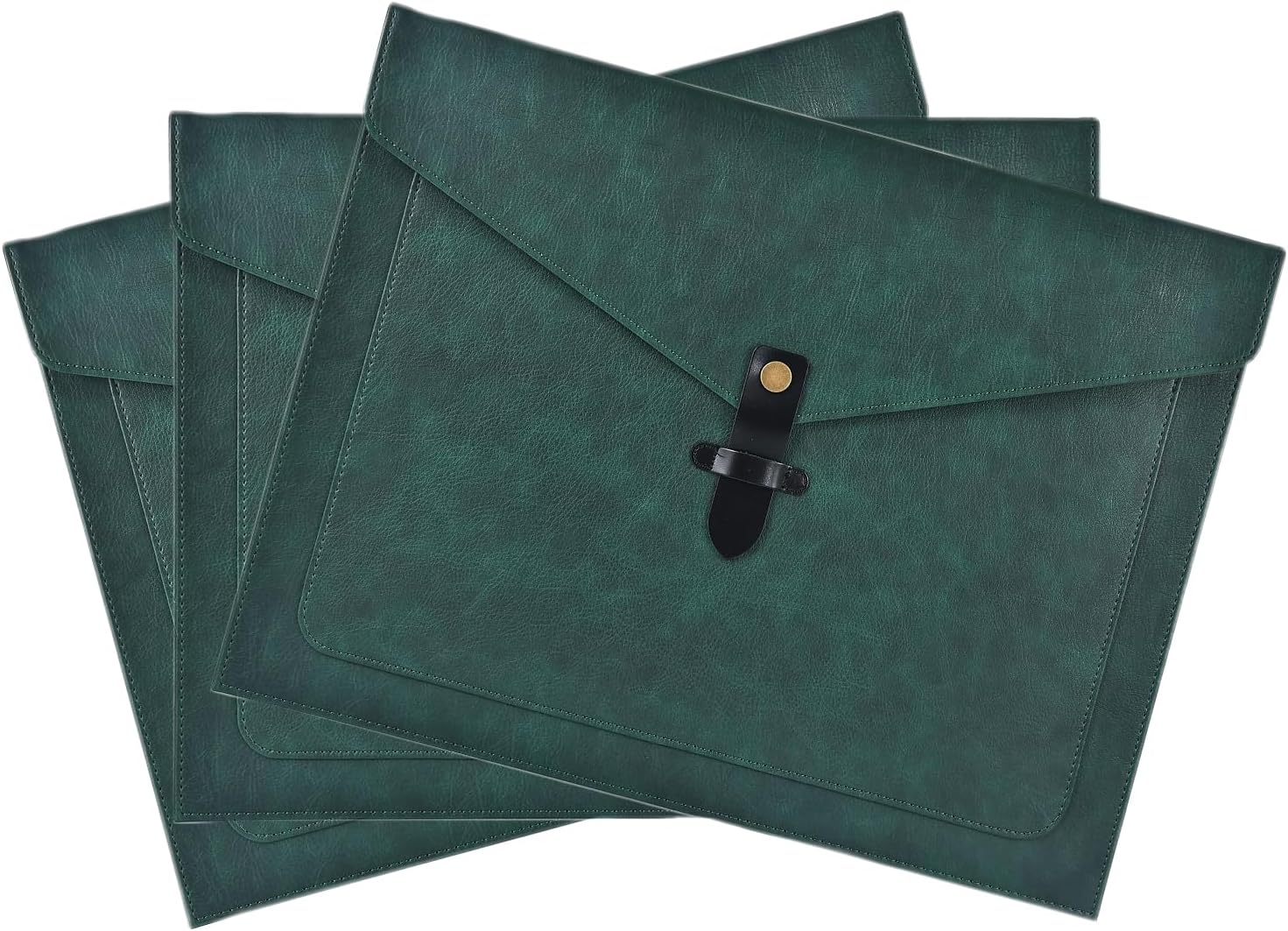 Black PU Leather File Folder, Snap Closure File Organizer, Important Document Folder with Pockets, Document Organizer, Laptop Sleeve Notebook Case, A4 Envelopes Filing Folder 3PCS
