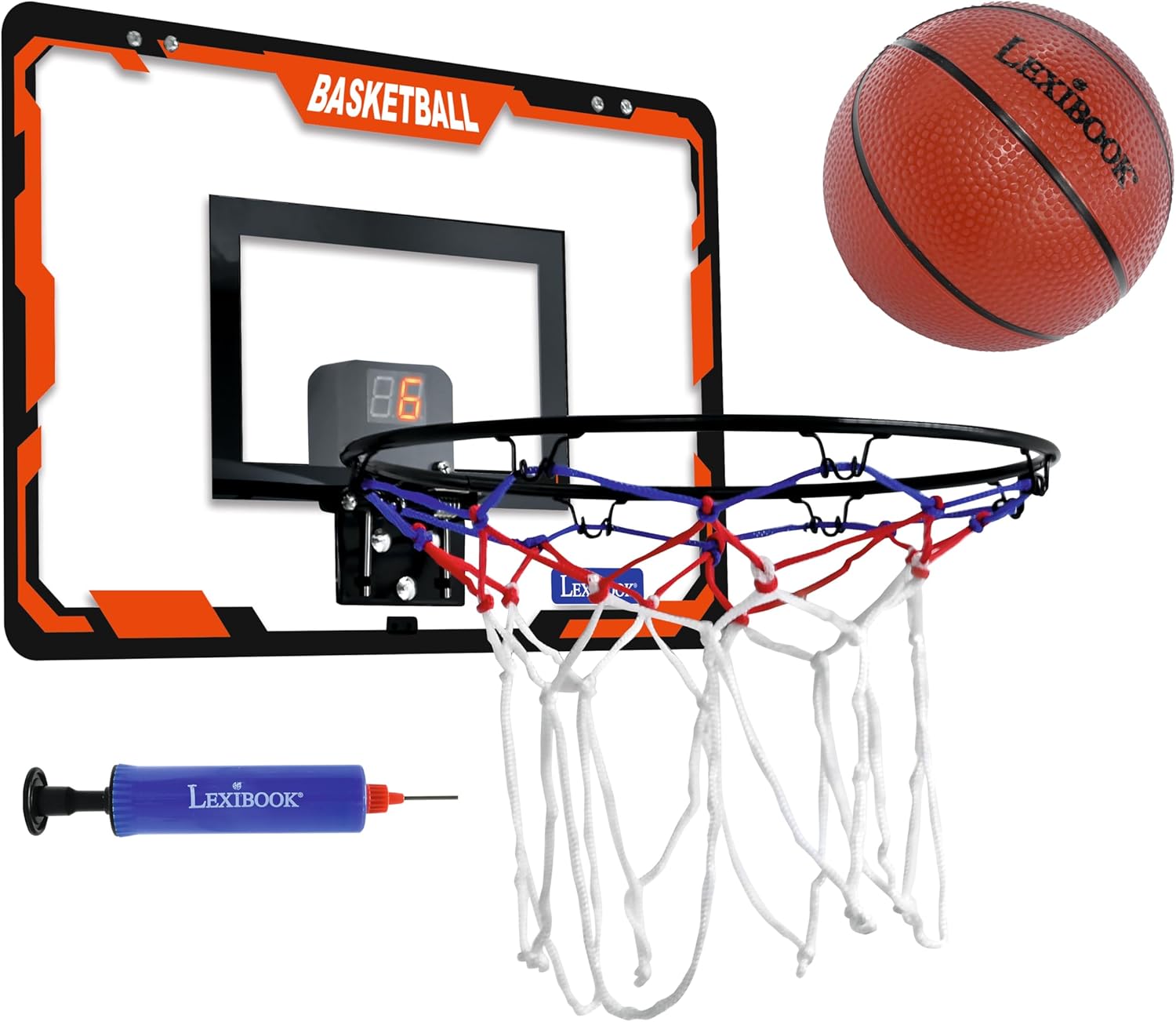 | Item Type Name | Lexibook, Interactive basketball hoop, Score counter, Sound effects, Basketball, pump included and installation kit included |